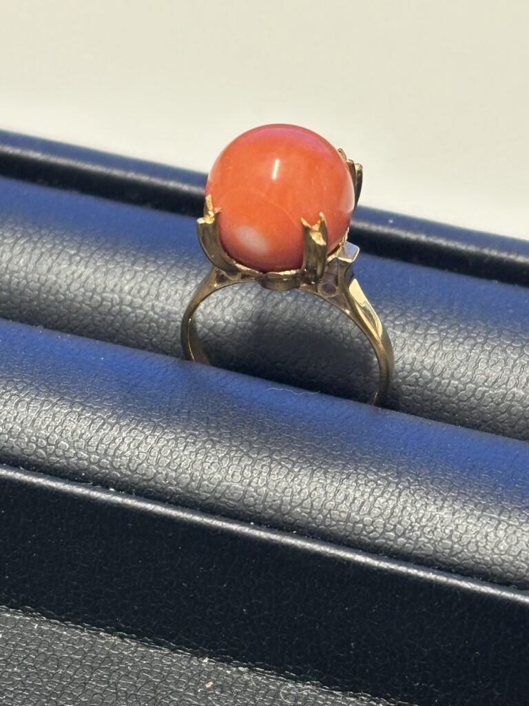 存在感抜群の珊瑚リングを高価査定しました😊 金・宝石買取はお任せください🌸